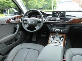 Высочайшее качество исполнения и внимание к мелочам характеризуют интерьер. В Audi A6 царит офисная атмосфера. Классическая архитектура центральной консоли радует глаз и не вызывает вопросов с точки зрения эргономики. Система MII управляется посредством джойстика на центральном тоннеле и обладает обширным функционалом – на дисплей можно выводить продвинутую систему навигации и четко прорисованную проекцию камеры заднего вида, а общую картину дополняет аудиосистема с объемным звучанием и возможностью сопряжения с мобильными устройствами.